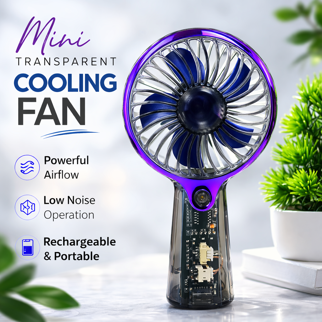 CRYSTAIRE Transparent Portable Mini Fan with 5 Adjustable Speeds, Rechargeable Cooling Fan for Travel & Office