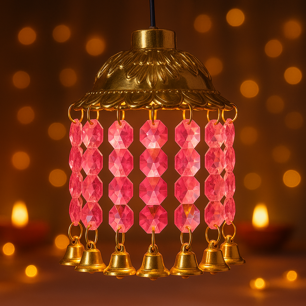 RGB LED Hanging Jhumar with Bells – Multicolor Decorative Light for Balcony & Pooja Room