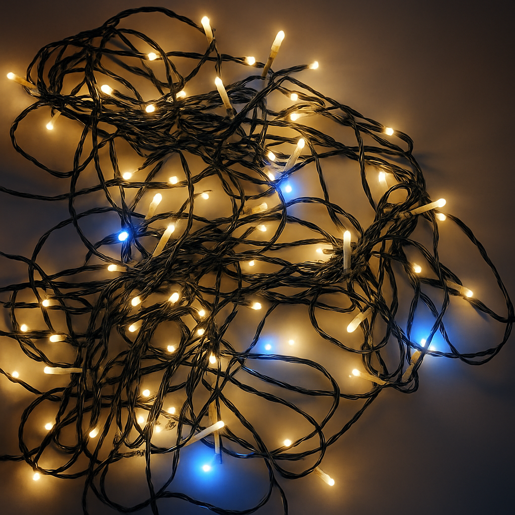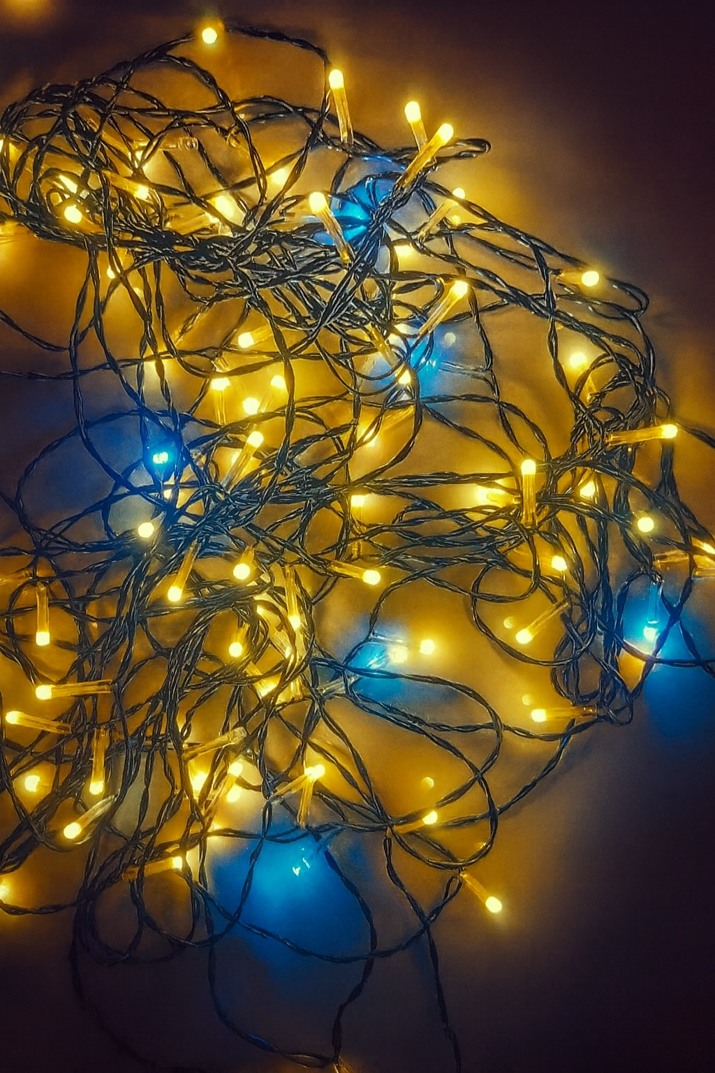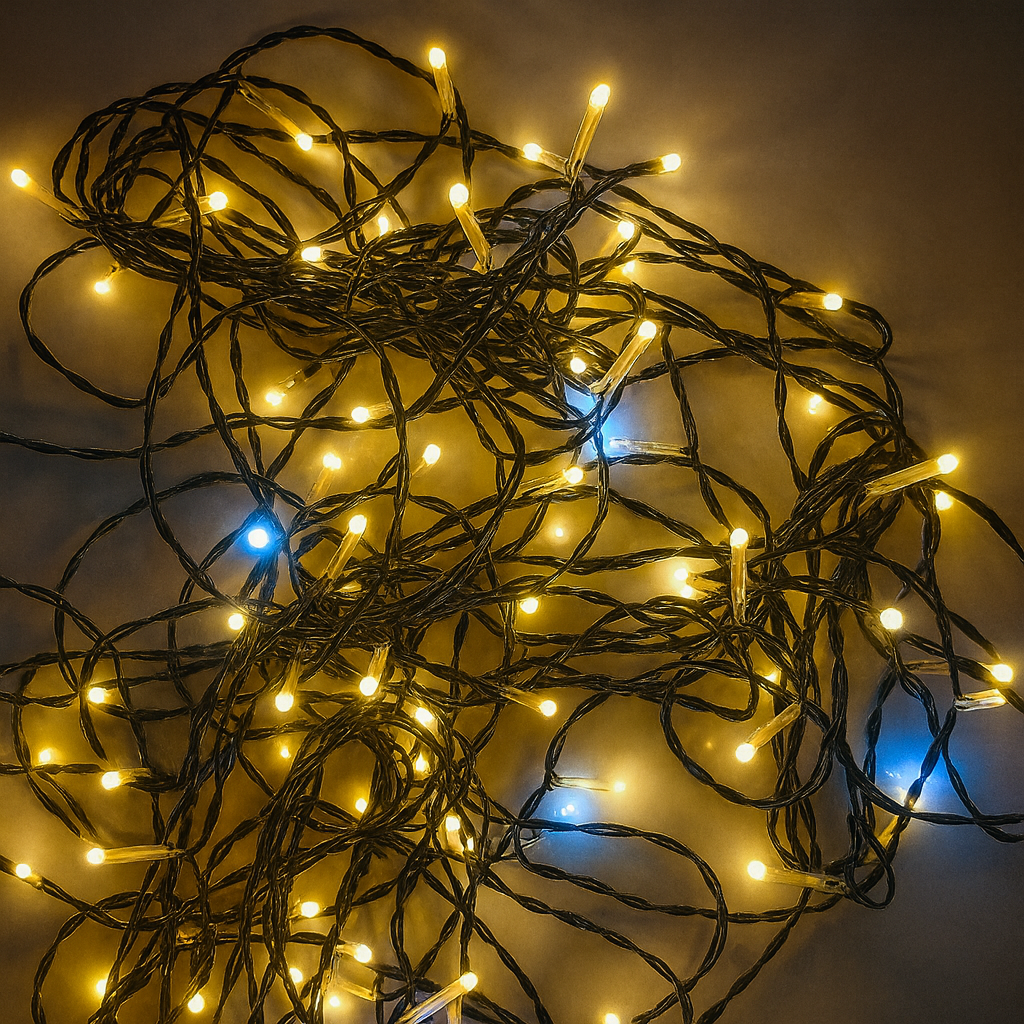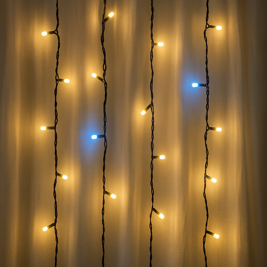 Cozy warm-white ambience with subtle white accent LEDs. A 60-ft string perfect for balconies, windows, festive backdrops, cafés, and parties.