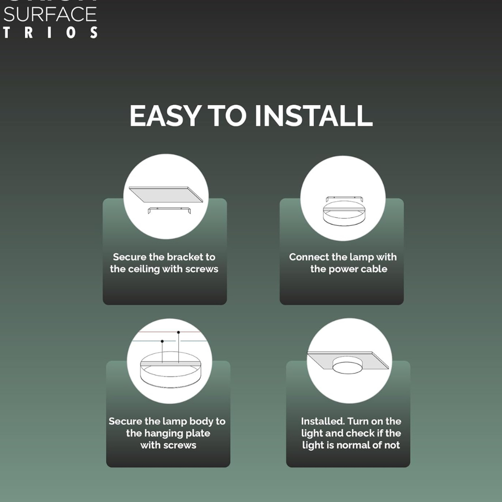 Modern round surface-mount design that sits neatly on ceilings without cut-outs. Ideal for rentals, renovations and quick upgrades.