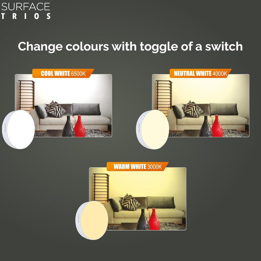 Quick Specs: Type: LED Surface Down Light | Power: 15W | Colors: White, Warm White, 3 in 1 (6500K / 4500K / 3000K) | Warranty: 1 Year Replaceable
