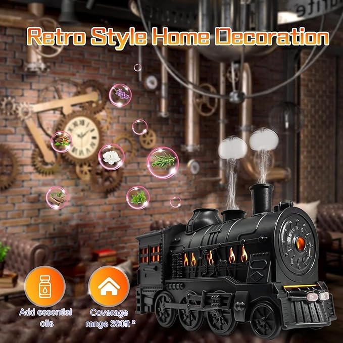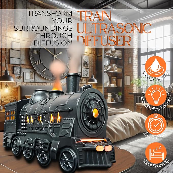 Train Aroma Oil Diffuser Withy Heads 300ml Ultrasonic Cool Mist Diffuser with Waterless Auto Shut-Off Protection
