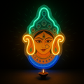 Durga Neon Wall Art with Diya – Festive LED Glow Panel