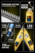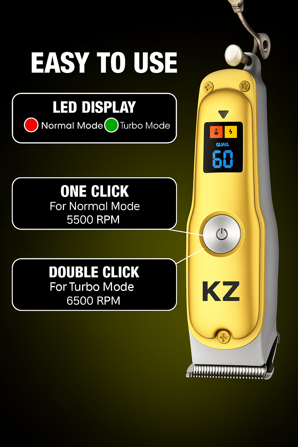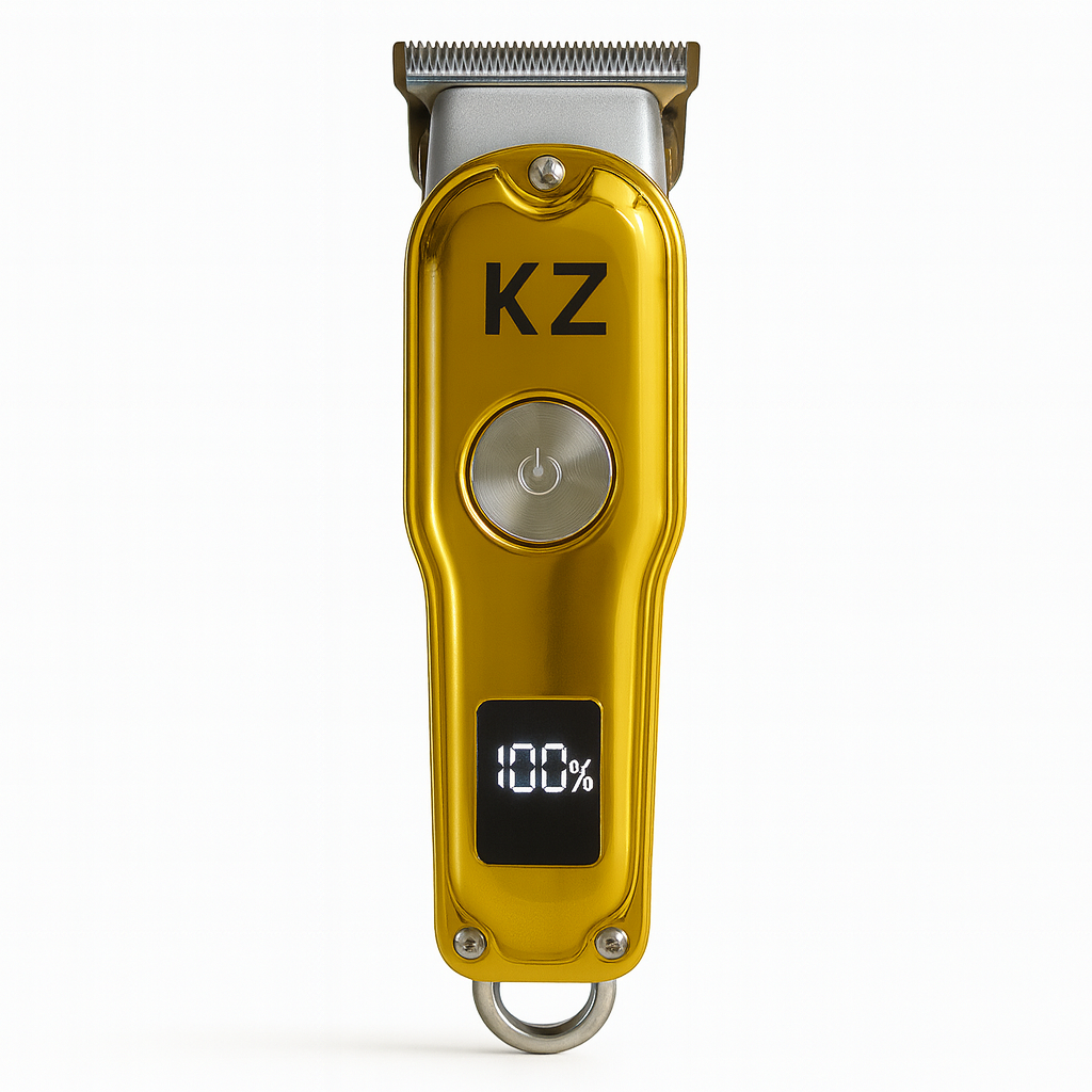 Precision T-blade • LED battery display • USB rechargeable • Powerful yet whisper-quiet • Ergonomic grip • Gold & Silver