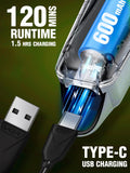 High-speed motor trims quickly with minimal noise for a calm grooming vibe.
