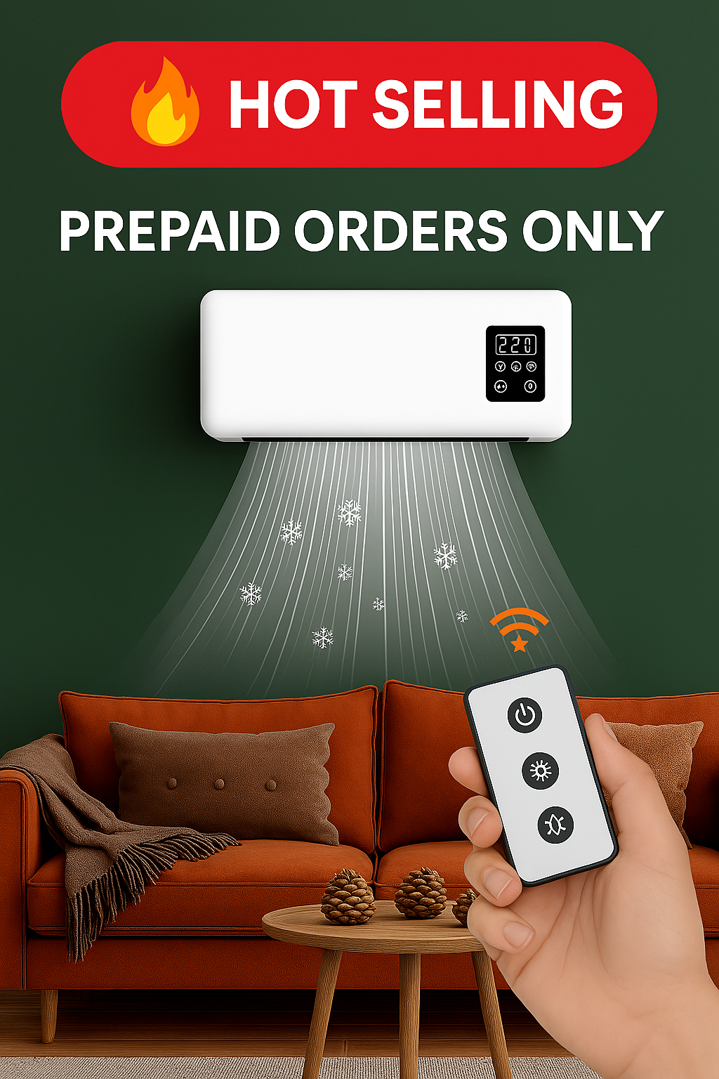 Stay cozy all year with the ECellStreet Mini Wall Mounted Air Conditioner (Heat Fan) โ a compact, stylish heater that can be used both on a tabletop or mounted on the wall. Ideal for bedrooms, bathrooms, living rooms, and office spaces, this digital heater delivers powerful warmth, silent performance, and remote-controlled convenience.
