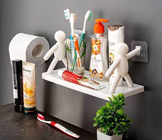 Wall Mounted Cartoon Stand Tray Self Adhesive Multipurpose Holder Strong Magic Sticker Self Rack Wall Holder Bathroom Storage for Kitchen, Bedroom, Livingroom