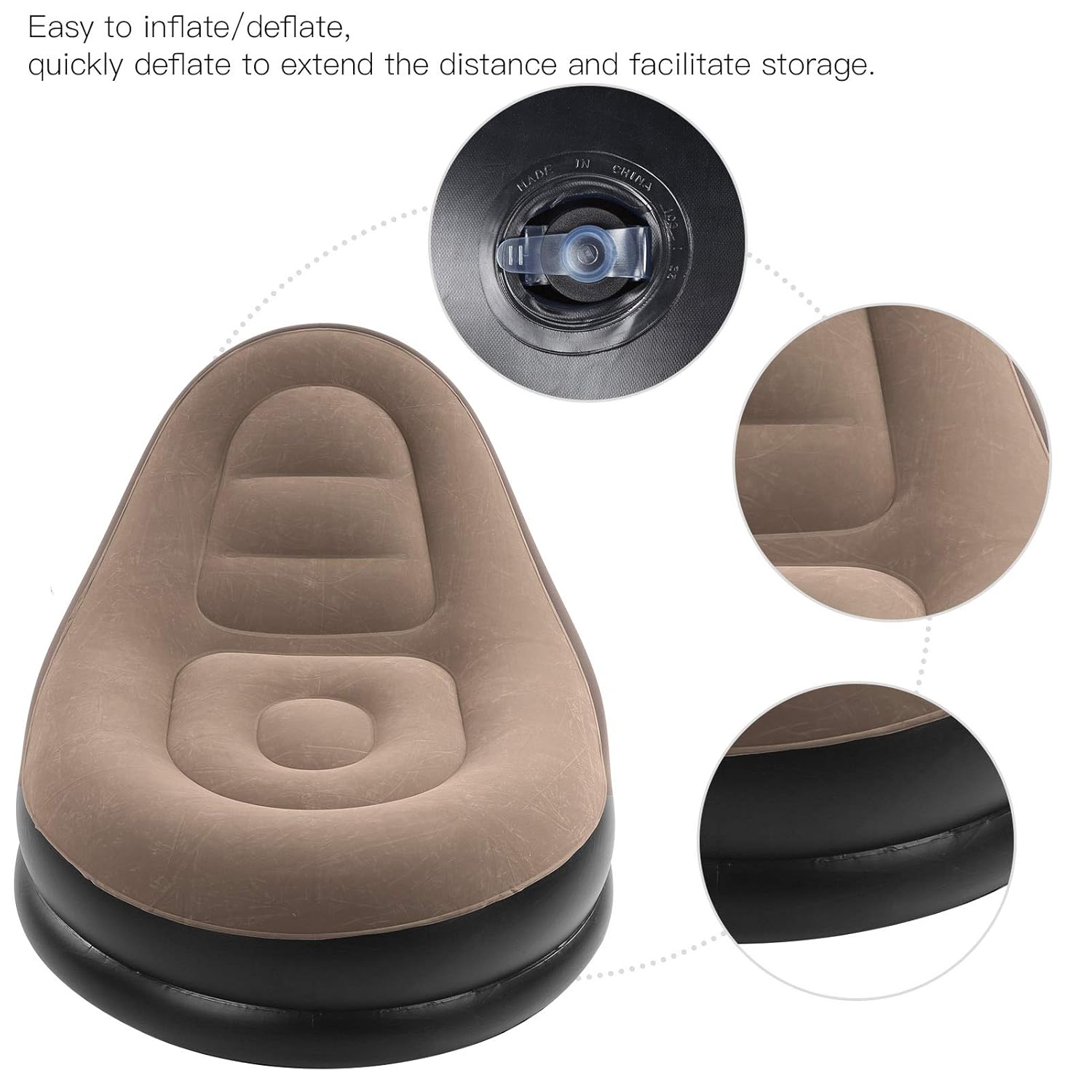 Enjoy luxurious comfort wherever you are with our inflatable recliner chair and footrest. Perfect for reading, relaxing, gaming, or even sunbathing indoors or outdoors!