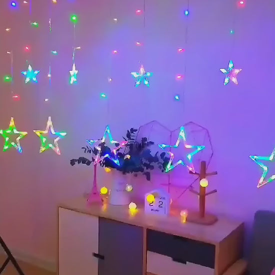 Bring magic to your celebrations with “Festive Fantasy” – a stunning 2.5m Star Curtain LED light. Adorned with 138 multicolor LEDs shaped into 6 big and 6 small stars, it adds sparkle to any setting. Perfect for Diwali, Christmas, parties, or home decor, it creates a dazzling backdrop instantly. Multiple lighting modes like twinkle, chase, fade, and steady let you set the perfect festive mood. Easy to hang on windows, doors, or walls for a vibrant, show-stopping display. Durable, bright, and beautiful – it’s not just decor, it’s a celebration enhancer. Elevate your space with colour, charm, and pure festive joy.