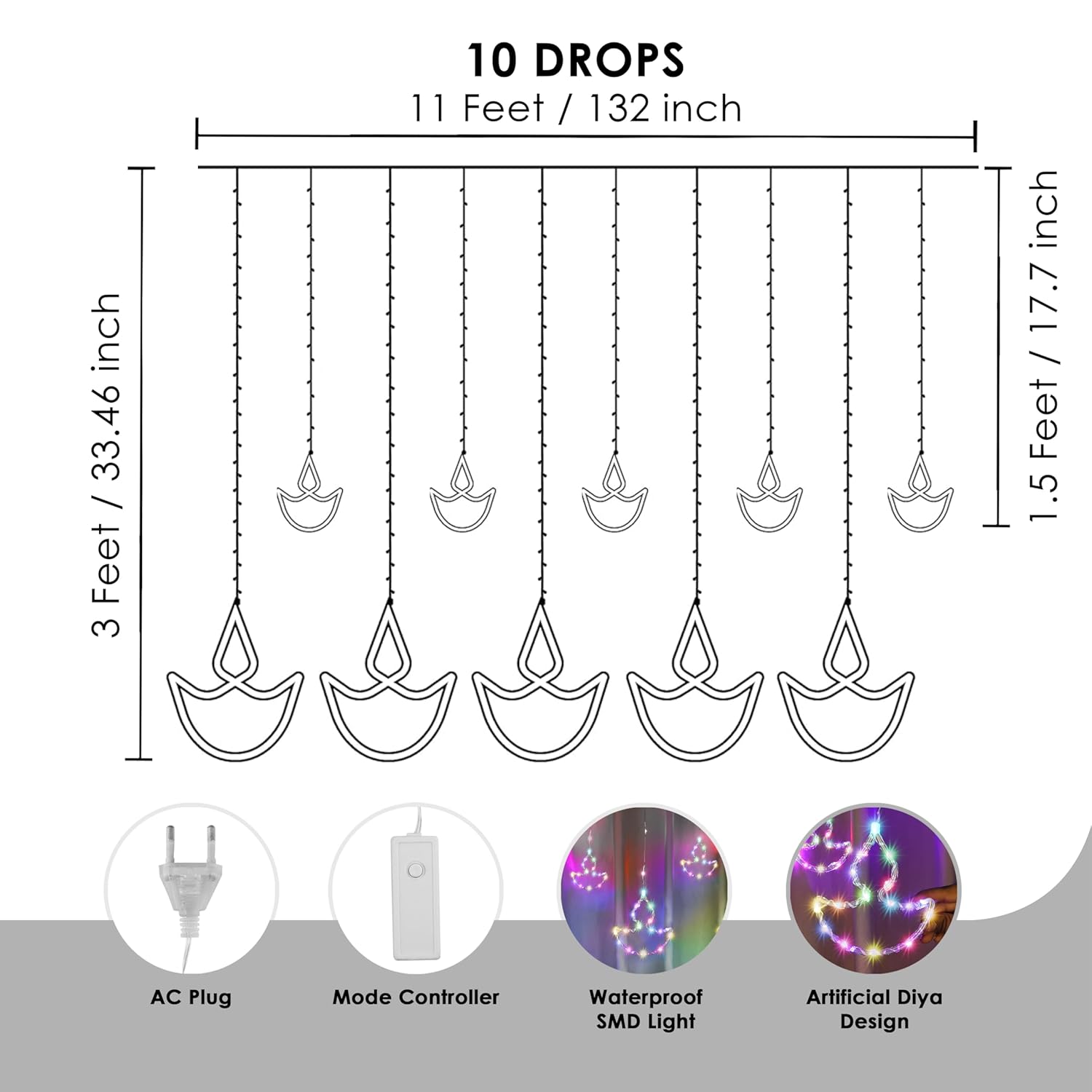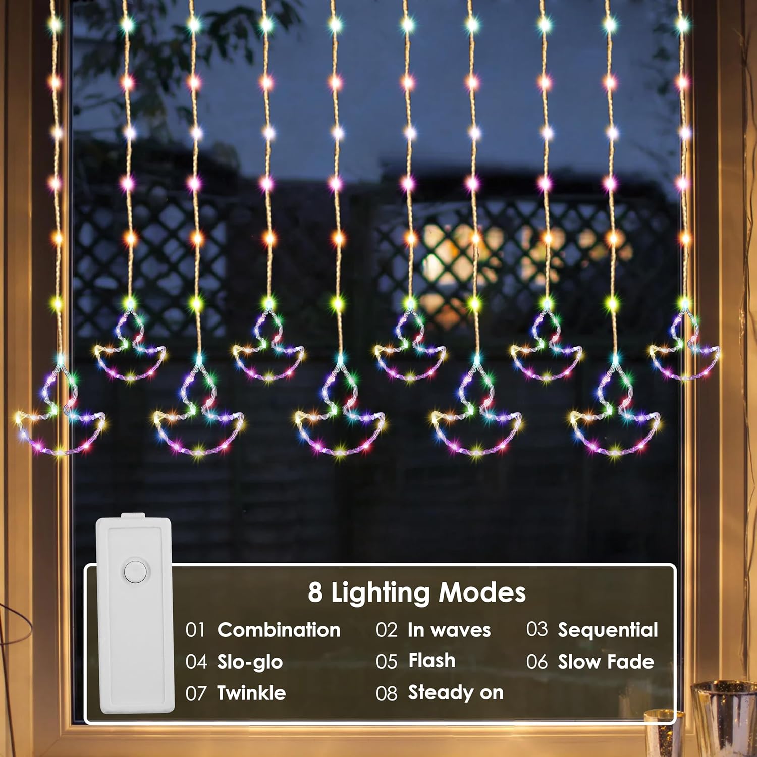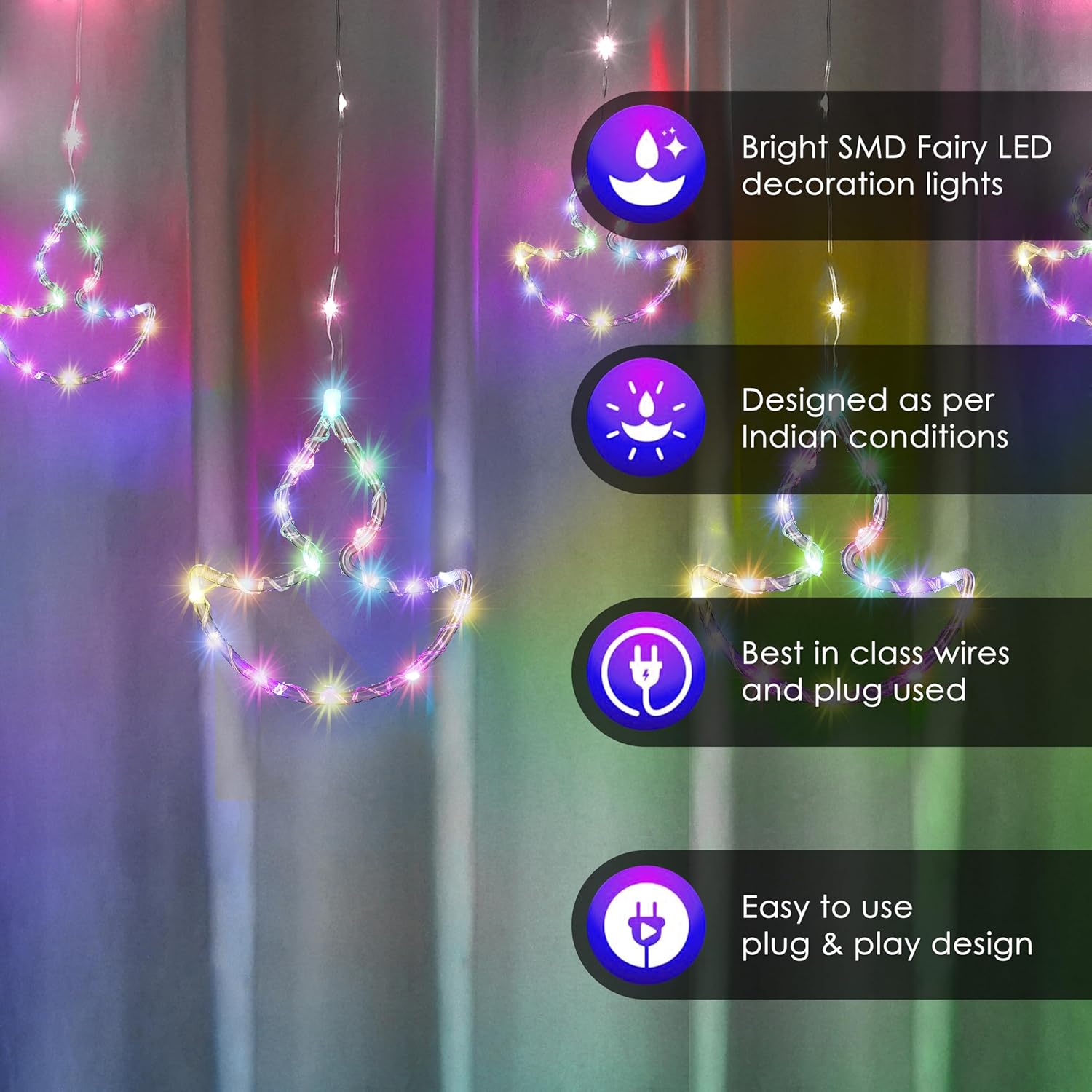 Waterproof Diya Curtain Lights – 5+5 Neon Stars, 8 Modes Decorative String