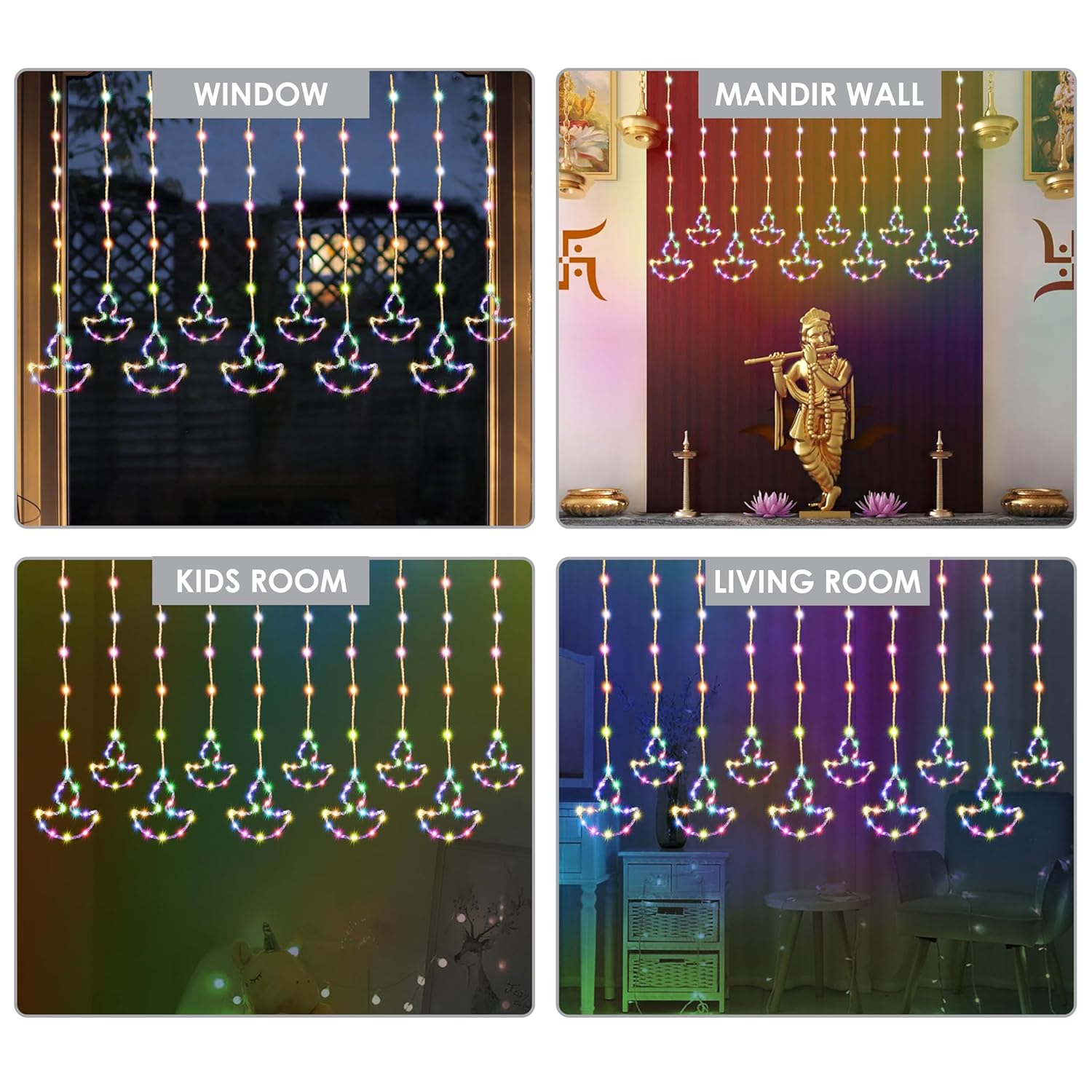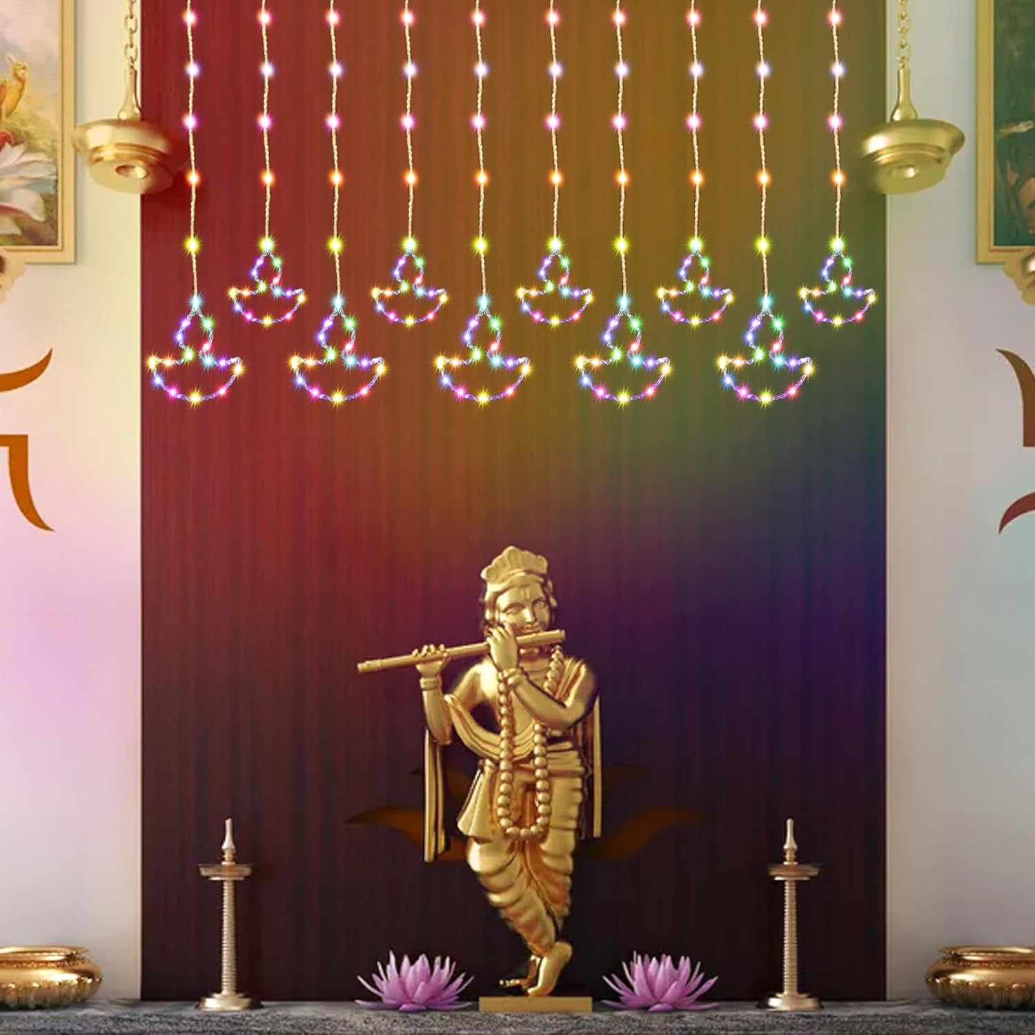 Timeless diya motifs + modern SMD LEDs = a warm, serene glow for pooja evenings, balconies, and festive backdrops. Waterproof build. AC powered. Two variants: Multicolor & Warm White.