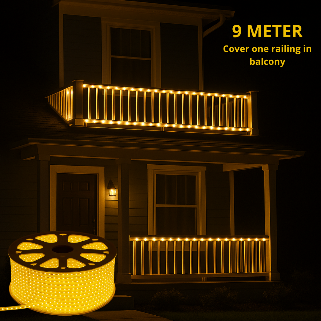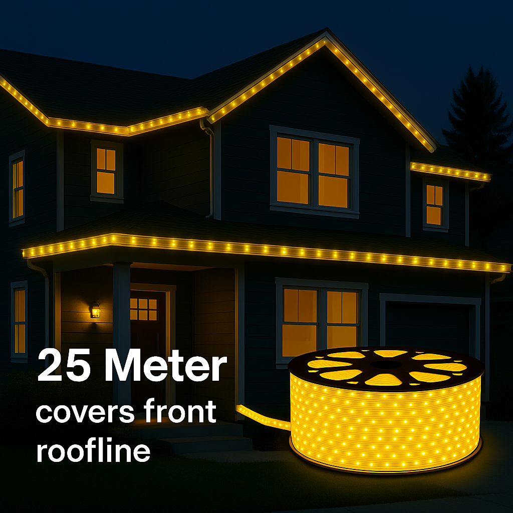 🌟 Ambient LED Rope Light – Available in 9M, 25M, 30M, 40M, & 45M Lengths Flexible, Elegant, and Ready to Glow – For Homes, Events & Outdoor Decor Elevate your space with the perfect glow using our Ambient Rope Light Series. Available in multiple lengths, these flexible LED rope lights offer seamless illumination for home décor, festive setups, commercial spaces, or outdoor events. Designed for vibrancy, durability, and ease of use, they bring elegance to any setting—big or small. ✨ Product Highlights: 📏 Available Lengths: 9M / 25M / 30M / 40M / 45M Choose the perfect size for your needs, from compact corners to full venue coverage. 💡 Warm Ambient LED Glow Soft, inviting lighting ideal for creating mood lighting or festive atmospheres. 🔌 Plug & Play (Standard Power Socket) No complicated setup—just plug it in and light it up! 🌀 Flexible Design Wraps easily around railings, fences, pillars, ceilings, or borders—custom-fit any layout. ☔ Weather-Resistant Build Safe for indoor and outdoor use—made with durable PVC and sealed to withstand splashes and dust. 🎉 Multi-Purpose Use Ideal for festivals, weddings, poojas, cafes, showrooms, balconies, gardens, or ambient indoor lighting. 🏡 Perfect For: Diwali, Eid, Christmas & New Year lighting Home interiors, balconies, stairs, windows, ceilings Wedding backdrops, mandaps & stages Cafes, event halls, garden pathways & commercial displays DIY home décor or event installations 💫 Why It Stands Out: One rope. Endless possibilities. These ambient LED rope lights offer the perfect blend of brightness, flexibility, and elegance. Whether you're decorating a single wall or covering an entire venue, the range of sizes ensures the right fit for any purpose—without sacrificing style or glow quality. 📦 What’s Included: 1 x LED Ambient Rope Light (Length: 9M / 25M / 30M / 40M / 45M – as selected) Pre-attached Power Plug (2-pin, Indian Standard) Flexible & Ready-to-Use Strip
