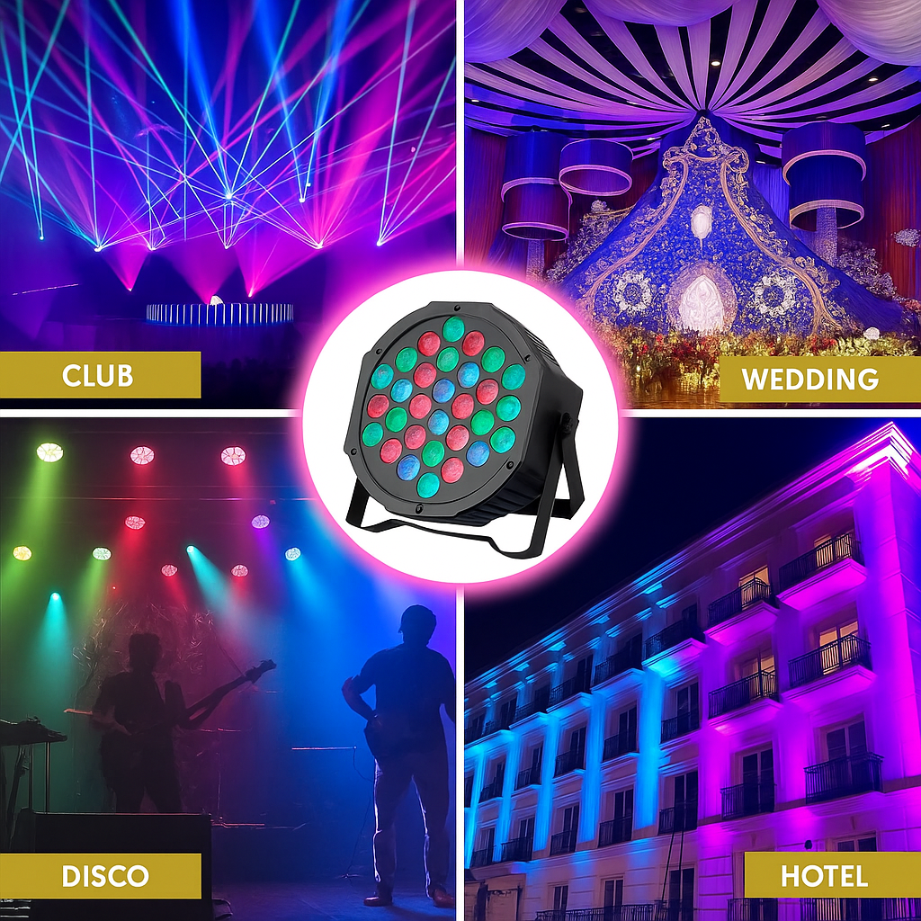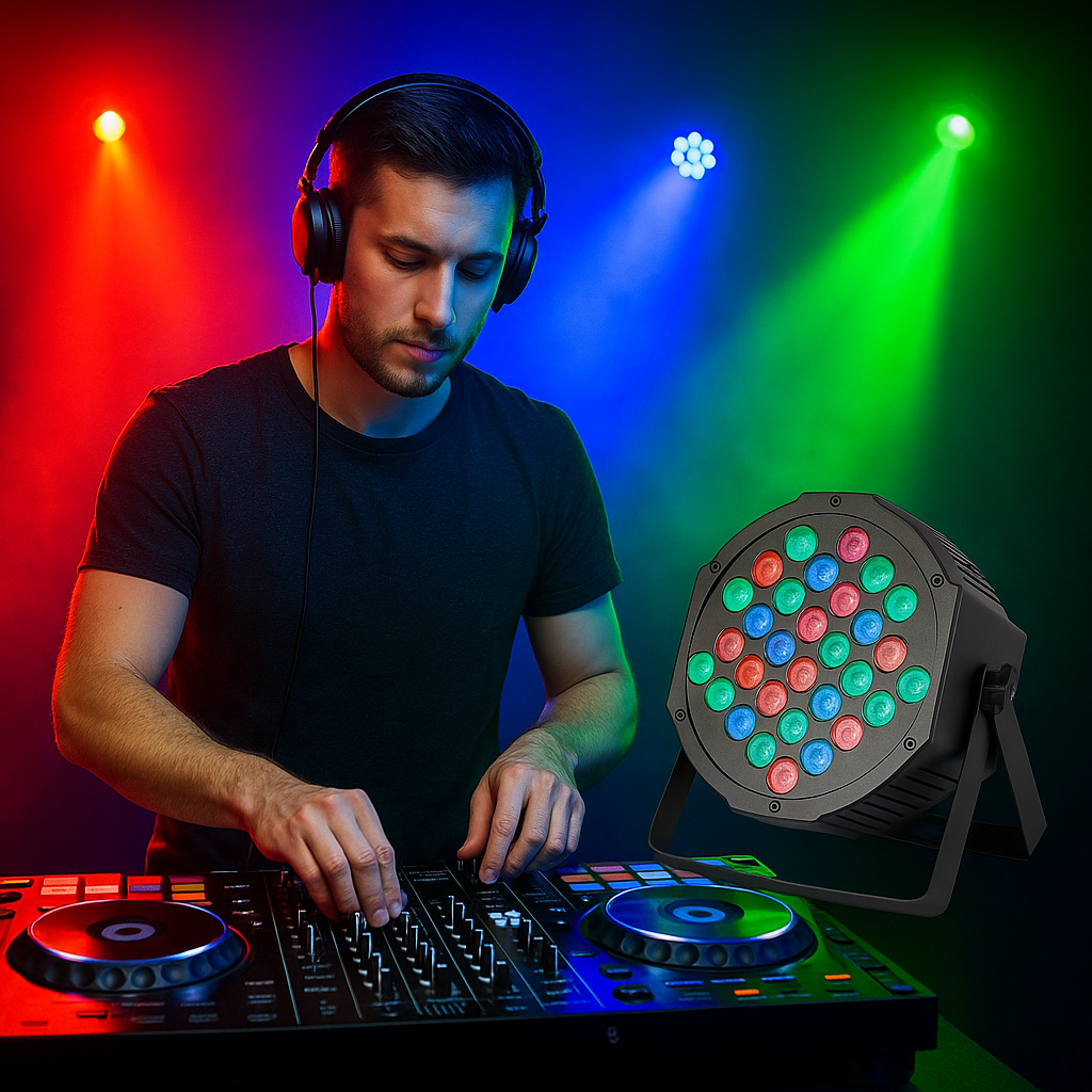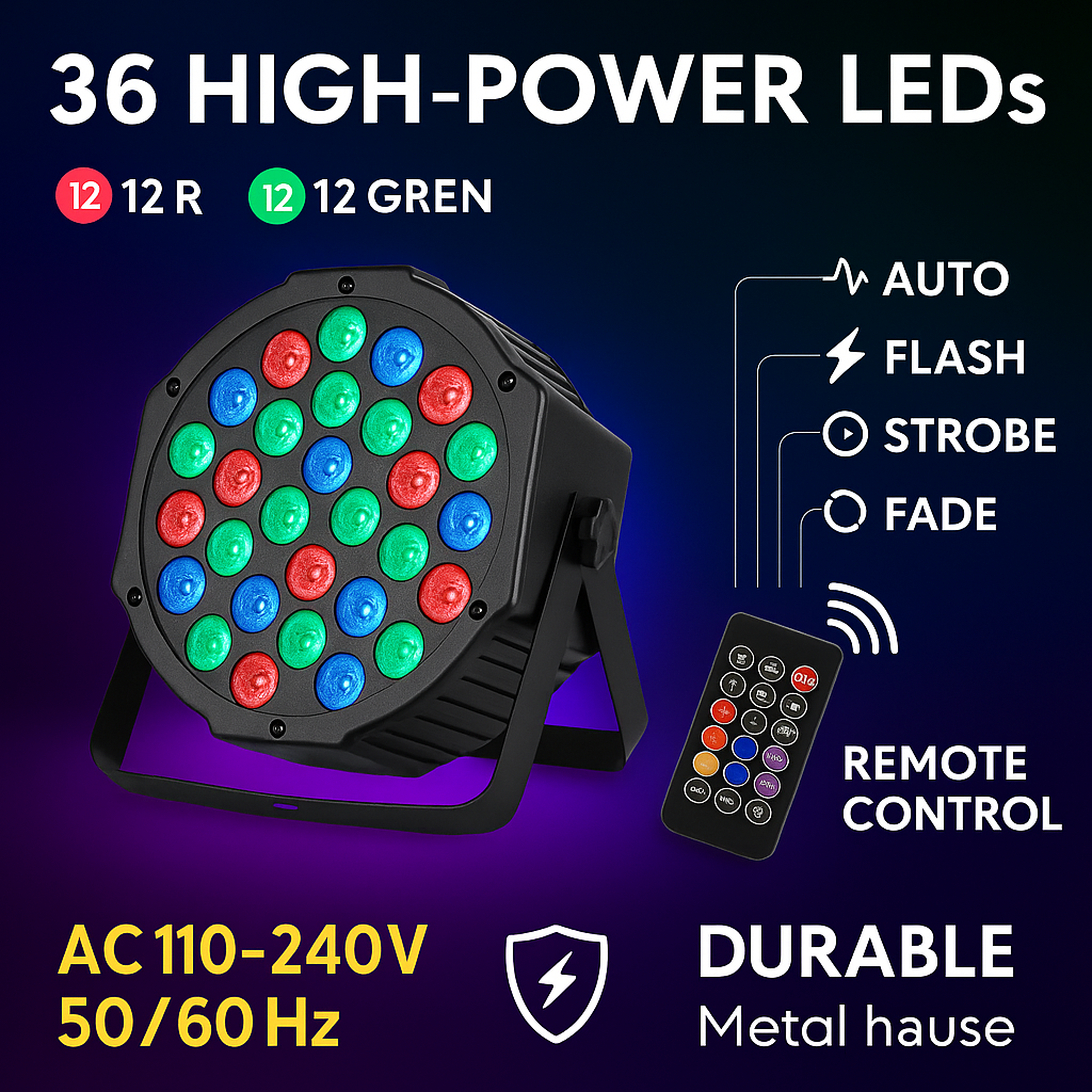 Light up your home, balcony, or party with this dazzling 36LED RGB DJ Par Light. Create unforgettable festive vibes with vibrant beams, sound-activated effects, and easy setup. Perfect for Diwali, Navratri, Weddings & House Parties!