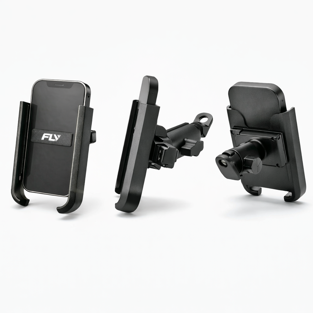 Firm side clamps hold the phone in place to reduce movement on bumps and uneven roads.