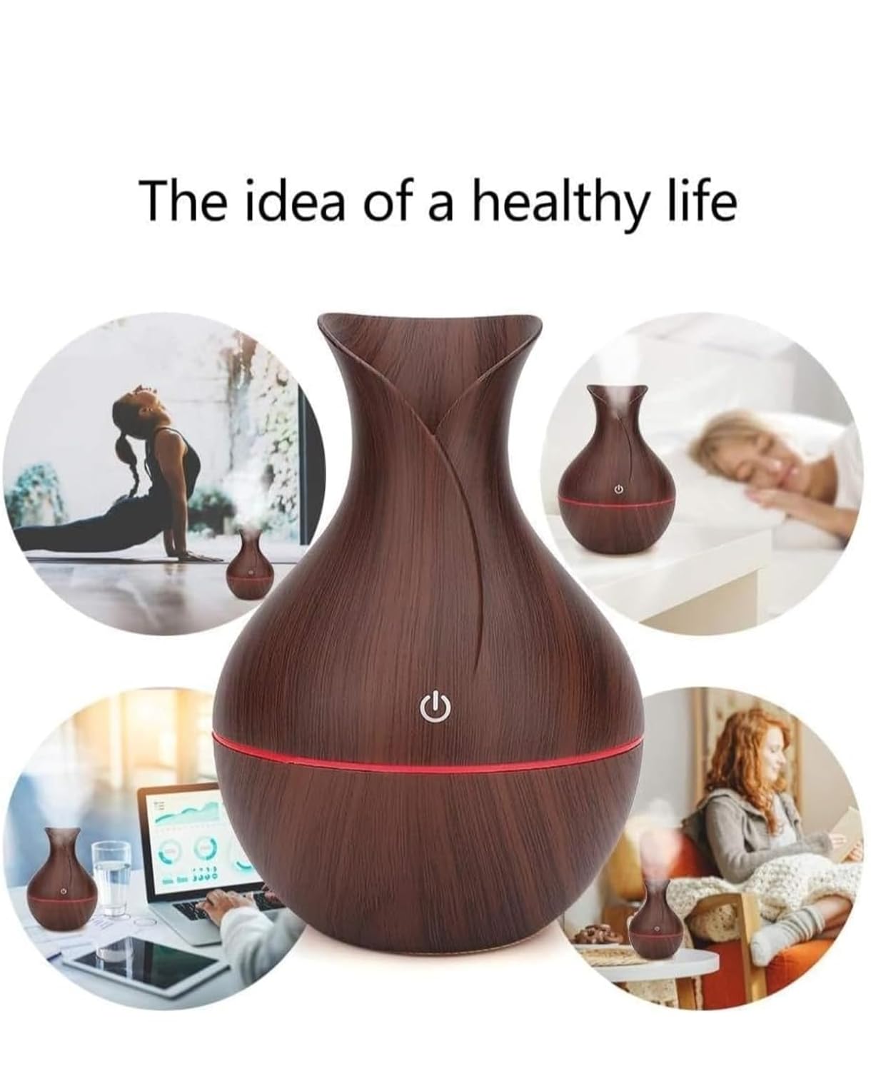 Pot Shape Wood Humidifier Aroma Air Humidifier with Advanced Ultrasonic Technology Dual Spray Modes Stress Relief Relaxation sleep Support