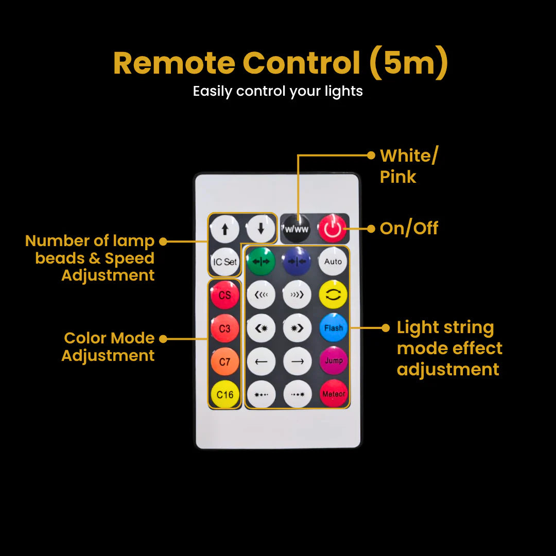 - Remote-First Control: Change colors, modes, and brightness with the included IR remote—swift and reliable.