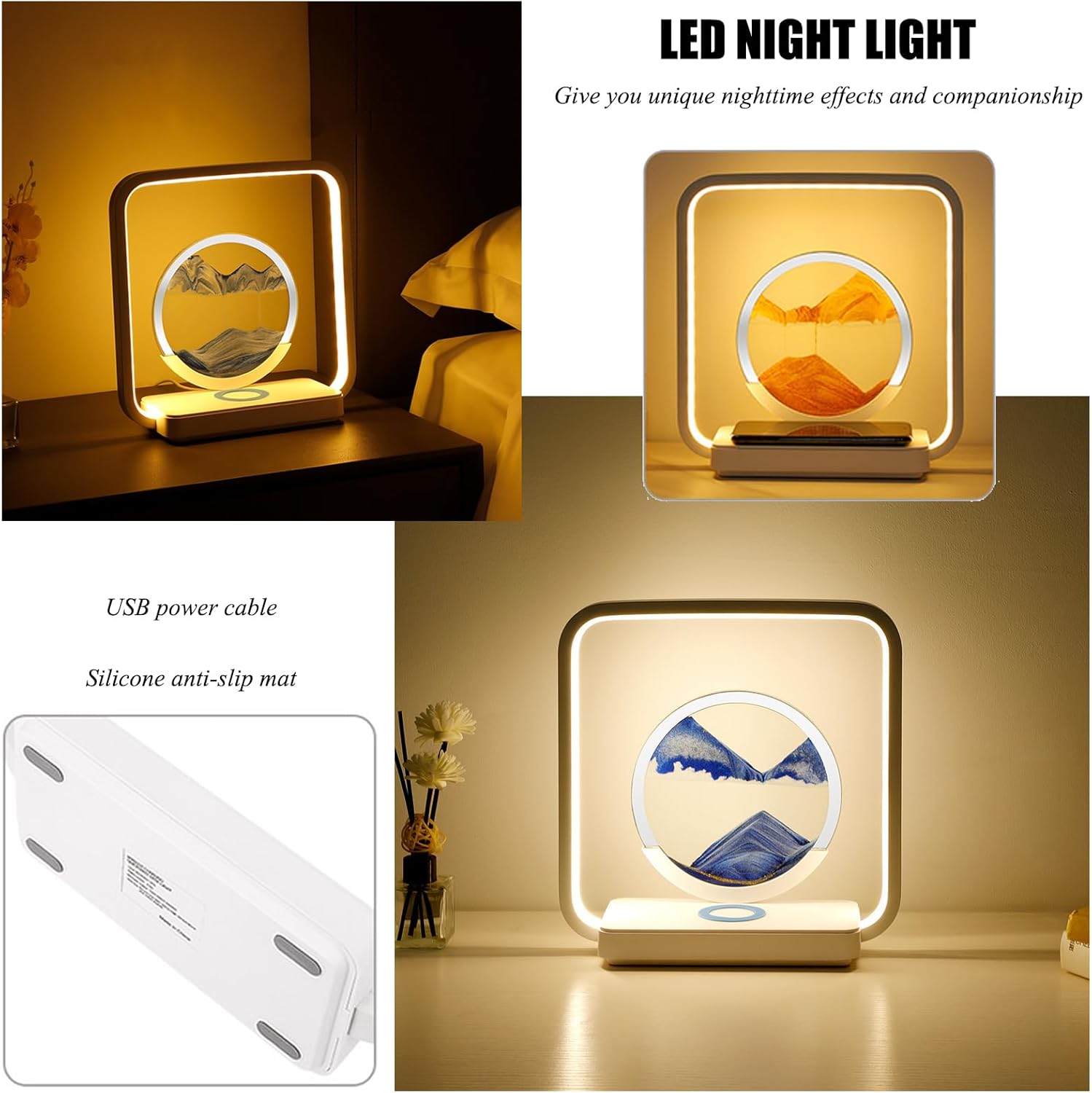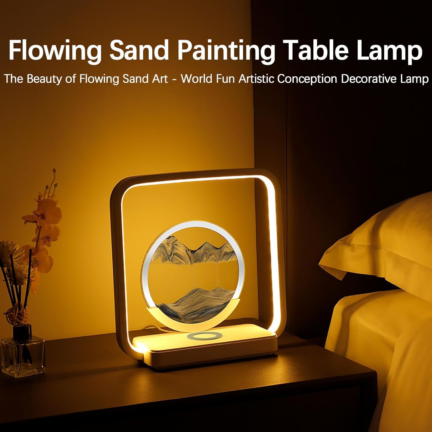 Sand Art Table Lamp, 360° Rotating 3D Deep Sea Liquid Motion Sand Art Picture, Quicksand Painting Table Lamp