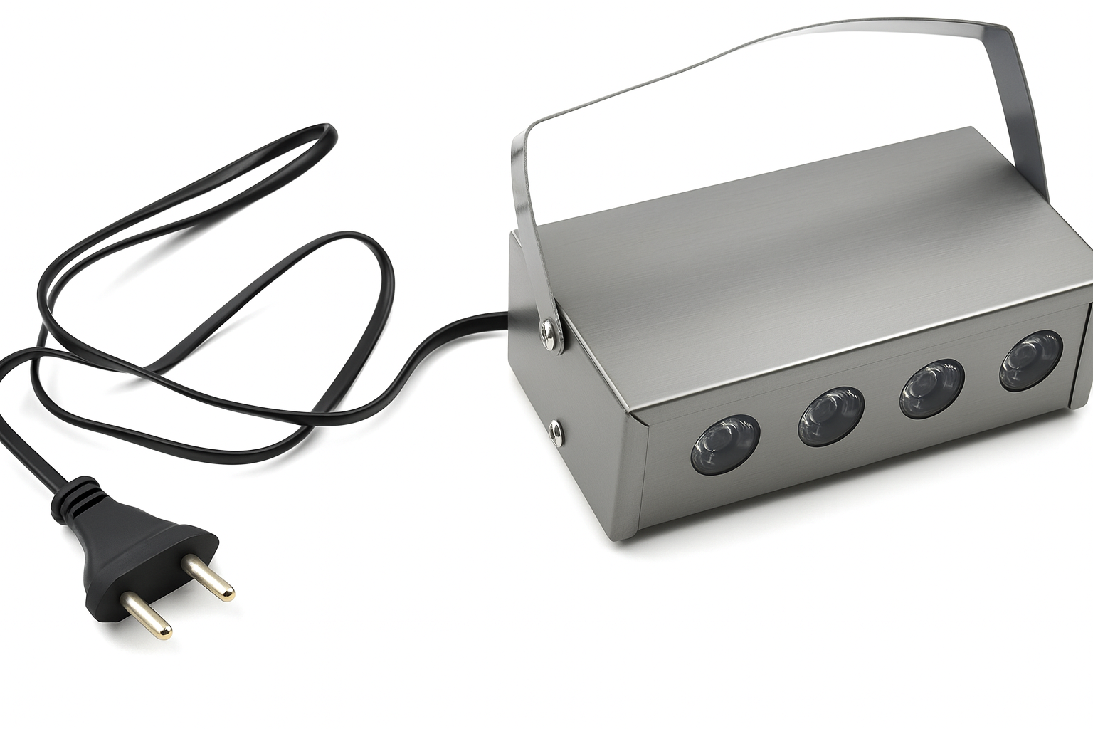 - Portable metal housing with handle—easy carry, quick tilt & aim.