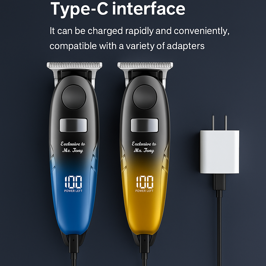 USB charging (port varies by batch); designed for hairlines, fades, and beard shaping