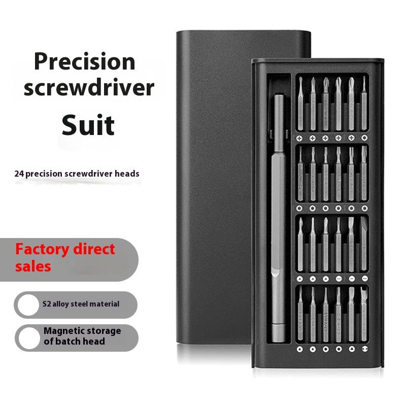 - 24 Precision Bits: Phillips, Flathead, Torx & more—covering common household and electronics needs.