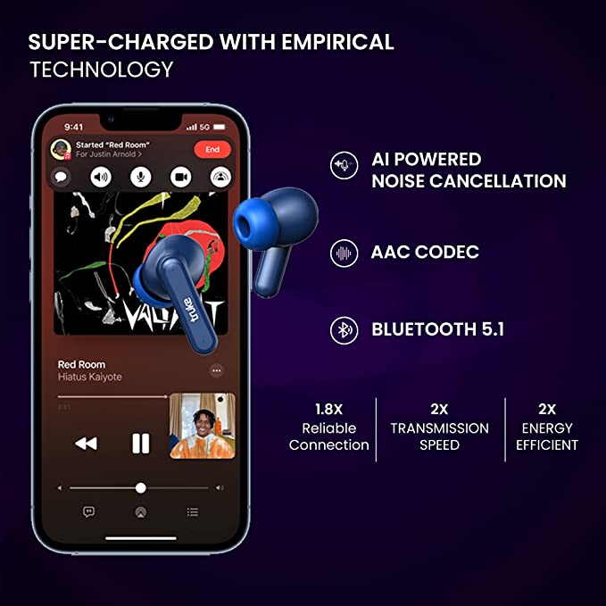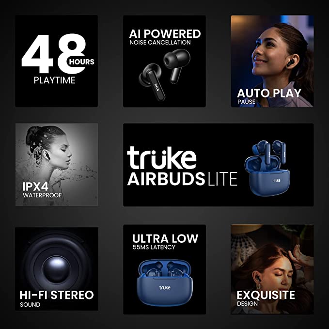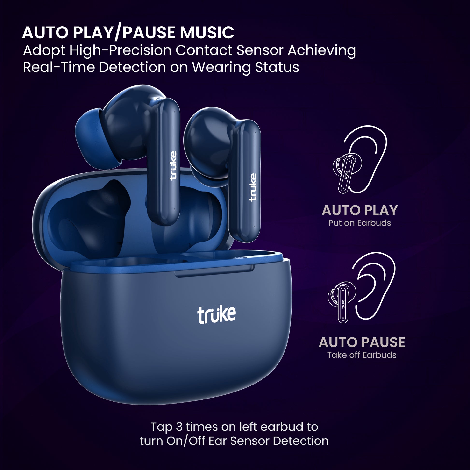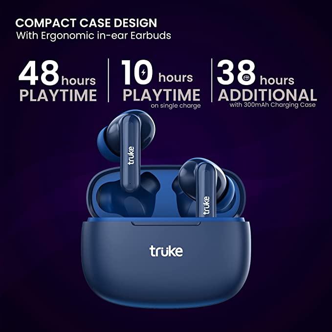 Truke Air Buds Lite with AI Powered Noise Cancellation Bluetooth Earbuds (Blue, True Wireless)