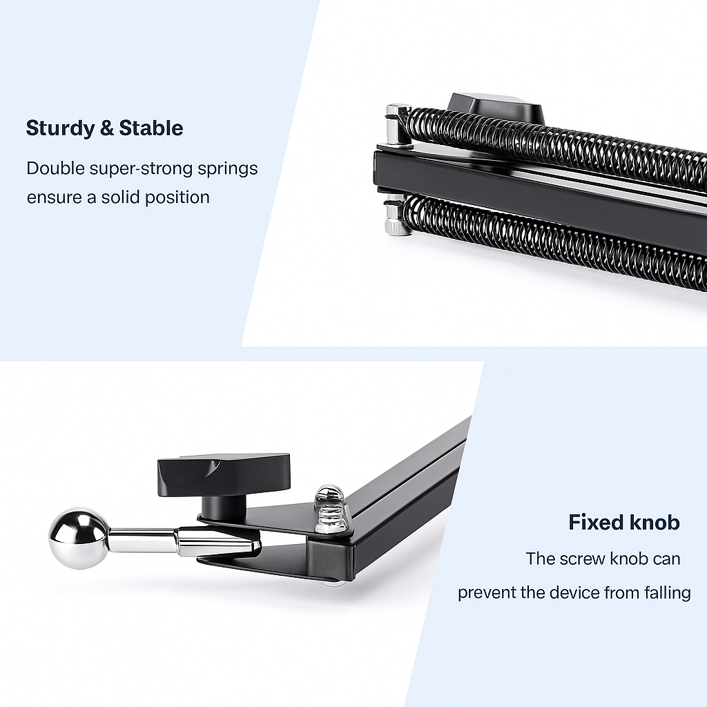- Strong Screw-Lock Base: Supports surfaces up to approx. 1.95 inches thick — suitable for beds, desks, chairs, headboards, tables, and more.