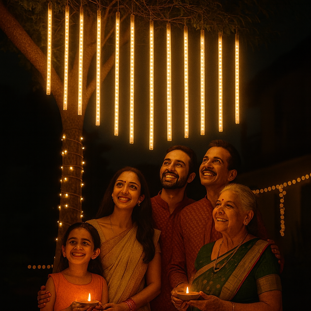 Create a winter wonderland with cascading meteor lights. Perfect for Christmas trees, balconies, parties, or gardens — bring a sparkling snowfall indoors or outdoors.