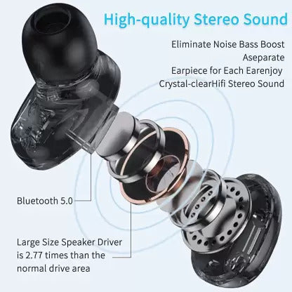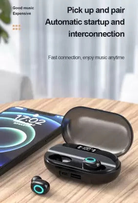 Wireless Earphone and Support Mobile Power Bank Bluetooth Headset Black True Wireless